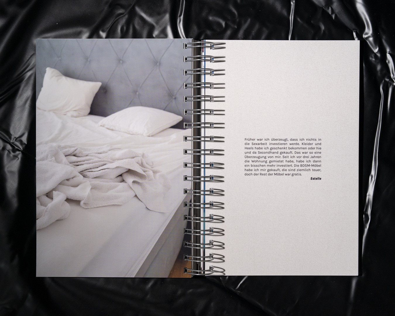 die andere arbeit explores the gap between public representation and the reality of sex work. in close collaboration with sex workers, the project provides a nuanced report on overlooked aspects of their daily routines while challenging voyeuristic clichés. by combining research, artistic interpretation, and dialogue, the publication evokes a quiet intimacy without becoming intrusive and affirms the complexity and legitimacy of sex work.